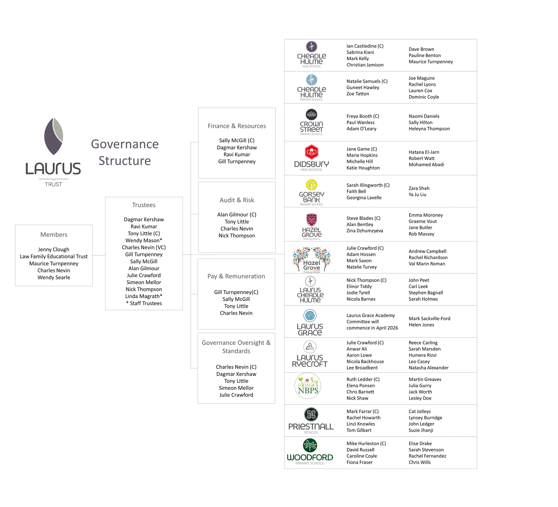 To contact the Chair of Trustees, Tony Little, please email [email protected] or write to Mr T Little, The Laurus Trust, Cheadle Hulme High School, Woods Lane, Cheadle Hulme, SK8 7JY